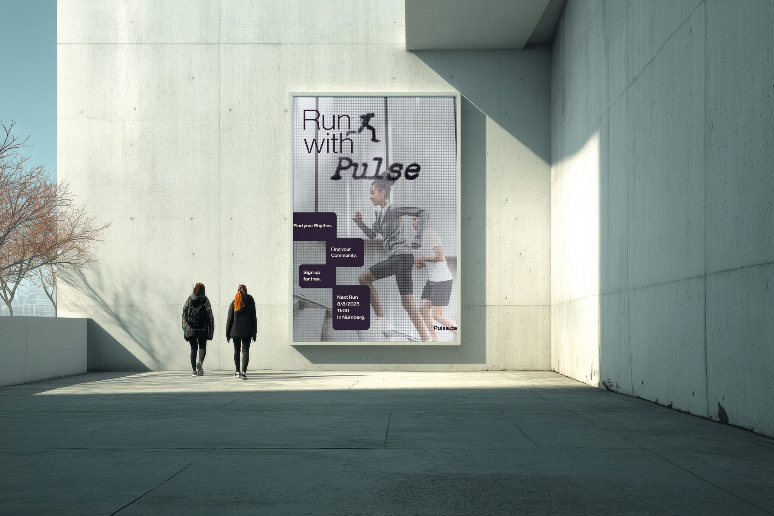 Durch die Verbindung von starker Typografie, emotionaler Bildsprache und digitaler Erlebbarkeit entsteht eine Marke, die sowohl physisch als auch virtuell funktioniert. Pulse lädt dazu ein, den eigenen Rhythmus zu finden – nicht allein, sondern gemeinsam. Ob auf der Straße, im Feed oder beim nächsten Run: Pulse ist da, wo Bewegung auf Identität trifft.